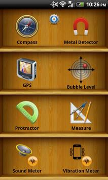 - Support for 50 languages - Compass - Metal Detector - GPS - Bubble Level - Protractor - Measure – Height