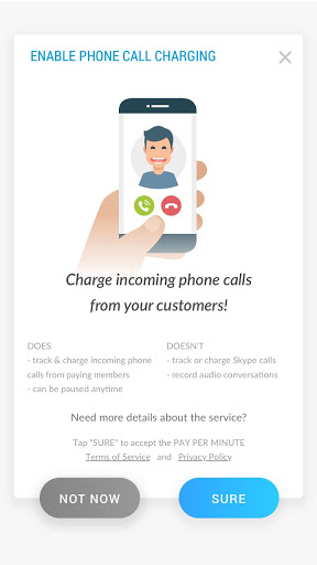 The only solution for charging your customers for consulting, training or advice via GSM phone calls. Install the app, login and start charging for your time!