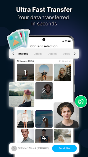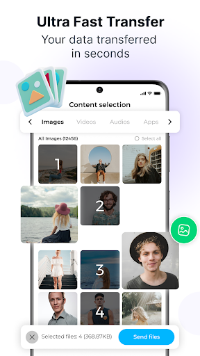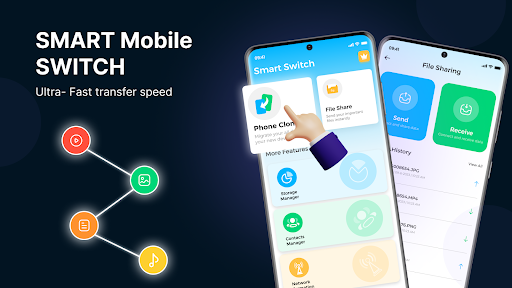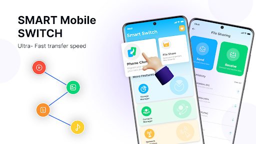 Madali mo na ngayong makakapagbahagi ng malalaking file, laro at app, video file, larawan, musika, dokumento, at higit pa gamit ang smart mobile switch file transfer app! Ang Smart Mobile Switch App Phone Clone ay ang pinakahuling solusyon para sa mabilis at secure na paglilipat ng malalaking file. Damhin ngayon ang mabilis na pagbabahagi ng file ngayon gamit ang isang data transfer app at ipadala kahit saan.