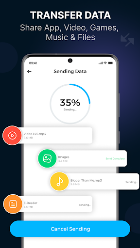Ang paggamit ng aming data share app at data transfer app ay nagtatakda ng pamantayan para sa mabilis, matalino, secure, at mahusay na paglilipat ng file para sa iyo. Ipinagmamalaki ng app na ito na nakatuon sa kalidad ng file at ipadala kahit saan ang isang napakasimpleng disenyo at isang hanay ng mga magagamit na feature, na ginagawa itong mapagpipilian para sa pamamahala at paglilipat ng data sa pagitan ng dalawang magkaibang Android phone. Lumipat ka man mula sa Android patungo sa Android o kailangan lang ng isang maaasahang tool sa paglilipat, naghahatid ang Share App. Tugma sa lahat ng pangunahing smartphone at tablet, ito ang pinakahuling solusyon para sa walang hirap at walang problemang pagbabahagi ng file at paglilipat ng data na app.
