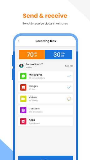The phone switch doesn’t need any kind of Internet connection to transfer files and copy the data. Now user can do clone phone and move all the files in offline mode, data smart switch app don’t needs to connect to Internet.