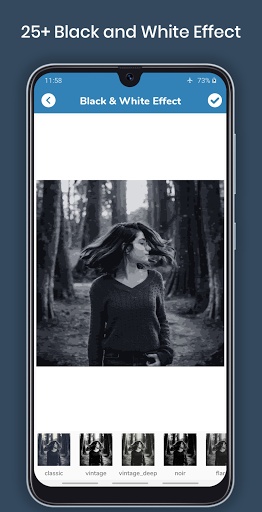 Black at White Photo Editor ay paraan upang gumawa ng larawan na may itim at putiAng mga epekto ng kulay ay gagawing kahanga-hangang hitsura ng iyong mga litrato!Lumilikha ito ng itim at puting magic.Kailangan mong gawin ay i-upload ang iyong mga paboritong larawan, itim na