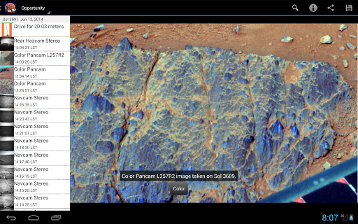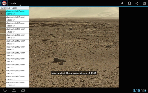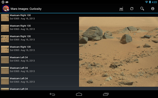 Mars Images delivers you the latest images from the Spirit, Opportunity and Curiosity Mars rovers. Swipe, scroll, and search through the latest downlink from Mars. Check out Opportunity's movements in her drive maps and view the stereo images in 3D with red-blue glasses. Send interesting images to your family and friends!