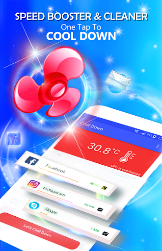 Madaling gamitin ang Android app na muling simulan ang proseso ng iyong telepono upang mabawasan ang paggamit ng CPU, malapit na mabibigat na mapagkukunan na nakakamit ang apps na nagpapabagal sa iyong telepono at gumawa ng init. Ang mabilis na palamigan ay tumutulong upang palamig ang temp ng telepono sa isang solong tab at mapahusay ang pagganap ng telepono. Kumuha ng na-optimize na pagganap ng telepono at mas mabilis na telepono gamit ang sobrang CPU cooler app na ito. Nangungunang paglamig app na libre hanggang sa suportado ng ad. Walang app ay maaaring palamig ang iyong telepono tulad ng fan o palamigan. Ang lahat ng mga cooling apps ay linisin ang iyong telepono RAM at i-restart ang background na tumatakbo apps at proseso upang magbigay ng tulong sa iyong telepono.