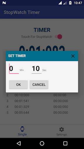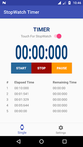 Stopwatch Timer allows to track the time in minutes, seconds and milliseconds. Timer has maximum time to reduce to zero. Ring tone when time elapsed Have vibrate option, Ring tone option