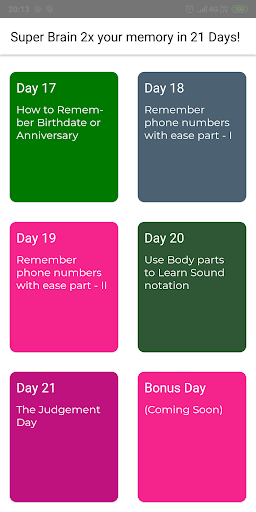 This 21 day program will teach you tips and technique you can use to increase your memory power. If followed properly I can guarantee you. You would have a doubled your memory power within 21 days.