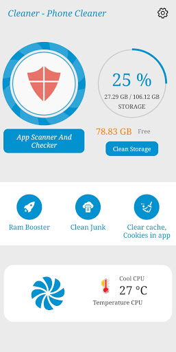Powerful Phone Cleaner - Cleaner & Booster is a professional cleaning app, including cache cleaner, junk cleaner, storage cleaner, notification cleaner, free up RAM, free up space, CPU cooler, battery saver, game booster, phone booster for Android system, which are all combined in simply one tap in this smart cleaner app