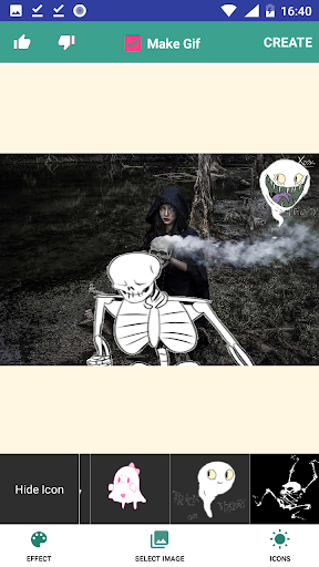 to make your photos more lively and less boring with a lot of interesting motion effects: skeleton dance, forefinger, scare ghost, spider, startle, evil face