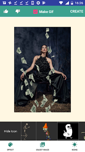 - The easy-to-use photo editor just selects the effect and icon then press the CREATE button. You will have a short video with shimmering effect for your photos.