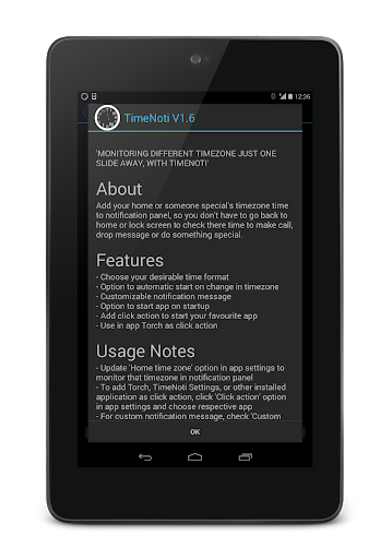 Add your home or someone special's timezone time to notification panel, so you don't have to go back to home or lock screen to check there time to make call, drop message or do something special.