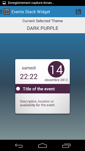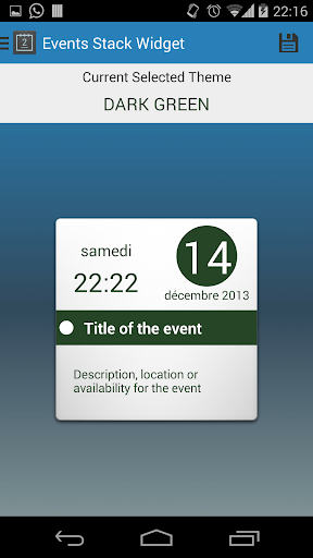- Isang naki-click na kaganapan Stack widget, upang i-browse ang iyong mga kaganapan na ipinakita bilang isang pakete ng mga maliliit na card sa iyongHome screen.