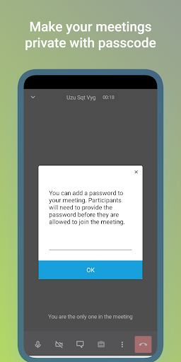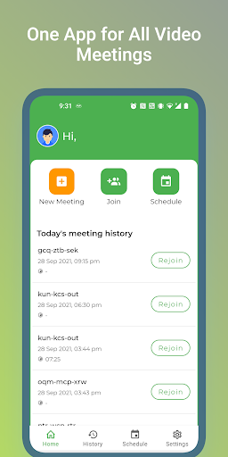 2.High Quality Audio & amp; VIDEO - Ang Audio at Video ay naihatid na may kalinawan at kayamanan ng Opus at VP8. 5. Kasaysayan ng Pagbabahagi - Pagsasama ng Mga Nakaraang Mga Pagpupulong Code nang direkta mula sa app upang hayaan ang iba na sumali.