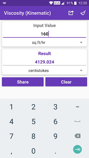 Calculated values and results can be shared to social media, mail, messages and other sharing apps.