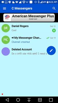 C Messengers is a fun and customizable text messaging app to have. You can customize it in settings in many different ways. It has stickers that you can add to your texts and it has a sticker bot that you can upload your own stickers that you have created. If you have created your own sticker pack.