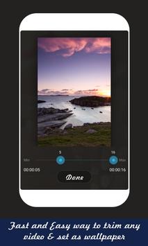 Any video that you may like can be set as your phone's live wallpaper. Trim the best past of the video use it repeatedly.