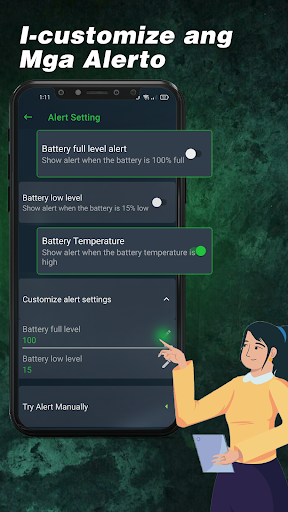 Manatiling updated sa real-time na status ng iyong device gamit ang Kasalukuyang Impormasyon. Nagbibigay ang Live Current ng mga instant na pag-update ng electric current, habang tumutulong ang Min at Max Values na subaybayan ang mga pagbabago sa performance. Manatiling may kaalaman tungkol sa Kasalukuyang Impormasyon sa Pag-charge ng iyong device.