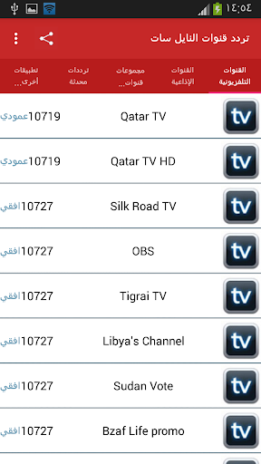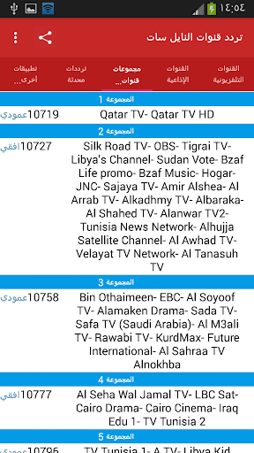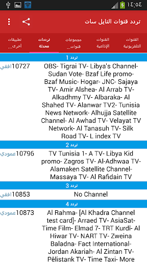 Ang application na "Frequency ng Nilesat Channels" ay nagbibigay sa iyo ng detalyadong impormasyon tungkol sa mga lumang at up-to-date na mga frequency sa 2019 para sa lahat ng mga channel ng TV at Radio sa Astronaut 7 West (Nilesat 102, 201 at Eutelsat 7 West A) Mga Tampok ng Application: Madaling gamitin simpleng interface para sa mga channel ng TV, radyo at telebisyon channel na may parehong dalas. • Detalyadong impormasyon para sa bawat channel (dalas - polariseysyon - coding - coding rate FEC-mode channel (SD o HD / naka-encrypt o hindi naka-encrypt) - Signal • Magpadala ng isang broadcast - "Wave frequency rate) • Maaari kang maghanap sa listahan ng mga channel ng TV at radyo na may detalyadong impormasyon tungkol sa bawat channel. Maaari kang maghanap sa listahan ng mga frequency