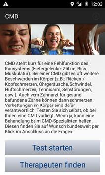 App zum CMD-Selbsttest (einschließlich Wechselwirkungen zwischen Bisslage und Körperstatik) und zur CMD-Therapeutensuche