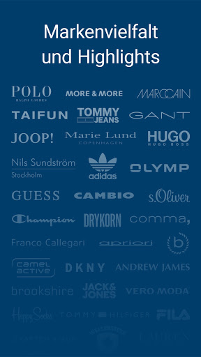 • Ang aming tatak ng mundo ay nalulugod na may higit sa 300 nangungunang mga label ng fashion at mga internasyonal na koleksyon nito: Tommy Hilfiger, Cambio, Polo Ralph Lauren, Wavesteyn, Marc O'Polo, Brax, Comma, Hugo, Tommy Jeans, Fox Schmitt, Gant, Opus , Lauren, Boss, Marc Cain, Bugatti, Pierre Cardin, Champion, Staccato, Blue Effect, S.oliver, Adidas Originals, Review, Levi at marami pang iba.
