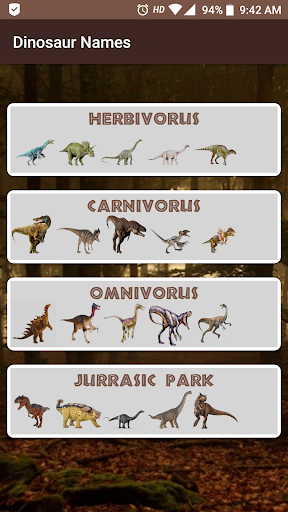 Ang mga pangalan ng dinosauro ay tumutulong sa mga bata na malaman ang tungkol sa mga pangalan ng dinosaur na nakategorya bilang herbivorus, carnivorus, omnivorus.Din ito ay ang kategorya ng mga dinosaur lumitaw sa dinosauro pelikula.