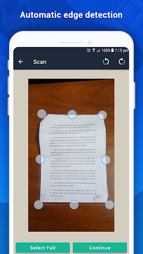 Mga Pagpipilian sa Pagpapahusay ng Dokumento Pinapayagan din ang mga pag-scan na ma-convert sa grayscale o iba pang mga filter na maaaring mapabuti ang pagiging madaling mabasa ng dokumento. Gamit ang advanced na pagtuklas ng gilid ng mga dokumento pag-crop ay ngayon isang napakadaling gawain. Maaari ka ring magsagawa ng mga simpleng pagsasaayos tulad ng pag-ikot ng na-scan na dokumento. Gamit ang tampok na PDF, hindi mo kailangang mag-install ng isa pang application upang ipadala ang iyong mga na-scan na dokumento bilang isang solong file. Gamitin ang flash o anumang iba pang mga advanced na tampok sa iyong camera ng telepono habang nakukuha ang iyong mga dokumento.