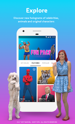 - Choose from a variety of holograms including movie characters, celebrities, athletes, musicians and comedians, as well as fun original characters and animals. New Holo characters released weekly!