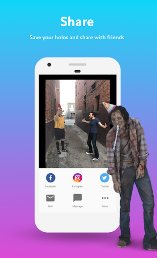 - Share your Holo with friends on social and messaging apps, including Instagram, Snapchat, Facebook, Twitter and more.