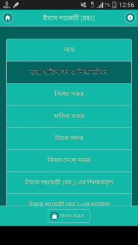 মুহাম্মদ, পিতা ইদ্রিস, দাদা আববাস, উপনাম আবূ আব্দুল্লাহ্, বংশ নামা : মুহাম্মদ বিন ইদ্রীস বিন আববাস বিন উসমান বিন শাফি‘—– আল কুরাশী আল শাফেয়ী আল মাক্কী। ইমাম শাফেয়ী (রহ.)-এর বংশ- কুরাইশ বংশের অন্যতম ‘‘আব্দে মানাফ বিন কুসাই’’ এর কাছে মিলিত হয়েছে, তাই ইমাম শাফেয়ীর বংশের মূল এবং রাসূল (ছাঃ)-এর বংশ একই। এ জন্য তিনি আল-মুত্তালাবী বলে পরিচিত, তিনি কুরাইশ বংশের তাই কুরাশী এবং তাঁর দাদা ‘‘শাফে’’ - সাহাবী এর দিকে সম্পৃক্ত করায় শাফেয়ী, মক্কায় প্রতিপালিত হওয়ায় মাক্কী বলে পরিচিতি লাভ করেন। আরো বিস্তারিত জানতে এই এপসটি ডা্উনলোড করুন...