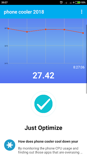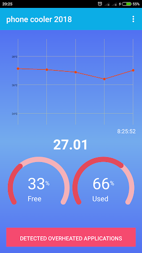 monitors your telephone temperature progressively, so you can see the change from minute to minute. At the point when the temperature is too high, Phone cooler - memory cleaner 2018 will caution you.