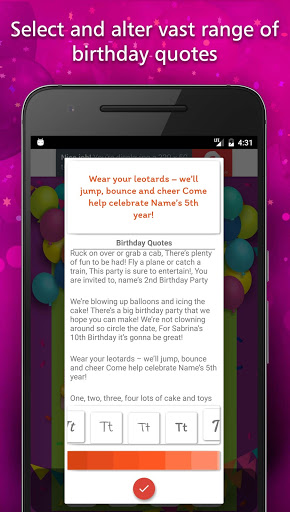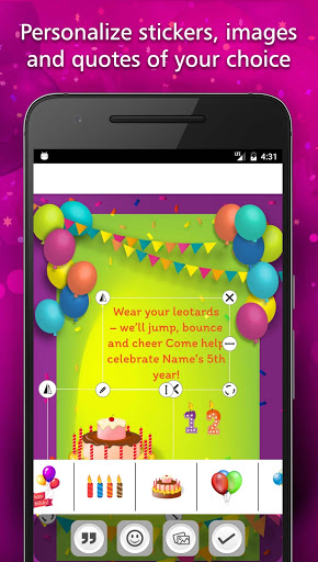 - Isulat ang iyong sariling mga paanyaya sa paanyaya o baguhin ang ibinigay na mga quote ng kaarawan.