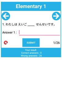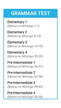 The Japanese Grammar Test application helps you test your Japanese grammar level based on curriculum Minna no Nihongo.