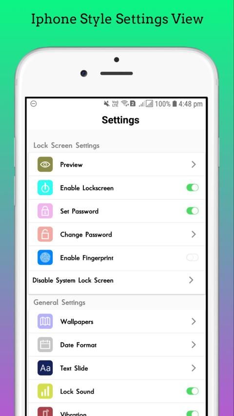 Turn your phone Lock Screen into a real iPhone style Lock Screen. Experience the apple interface right on your android phone. It's easy, with just one click, your phone switches to app lock ios style.