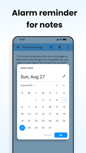 na may libreng notebook & amp; Mga Tala , mayroon kaming tala ng tala para sa iyo na pumili ng oras, ulitin o pasadyang anumang oras na gusto mo.Notebook & amp; Mga Tala APP APPAIK SA MAHALAGA SCHOOL Mga Tala Sa oras upang manatiling maayos na may deadline.Ang Mga Tala app ay isang madaling gamitin at amp;Pinakamahusay na Tala ng Pag -inayos ng App upang ayusin ang iyong abalang buhay at amp;Dagdagan ang pagiging produktibo.Gamitin ang libreng tala & amp;Notebook app na kukuha ng Mga Tala & amp;Checklist ngayon upang gawing simple ang iyong buhay!