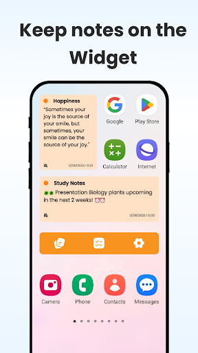 one-click sa tool na Tala ng Widget upang sumulat ng Mga Tala agad.Tingnan ang Mga Tala , Tandaan ng Kulay at amp;Sticky Mga Tala sa Home Screen upang matandaan nang mahusay at amp;I -access ang Tala ng Pag -access ng app sa pamamagitan ng Sticky Mga Tala - Tandaan ang widget sa screen.Ang Sticky Mga Tala ay maaaring baguhin ang laki, mula sa pinakamaliit na Mga Tala hanggang sa pinakamalaking malagkit na Mga Tala .Mga Tala , mga checklists
