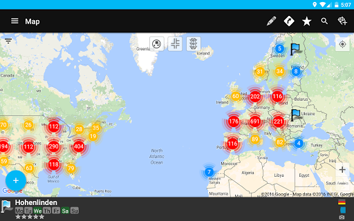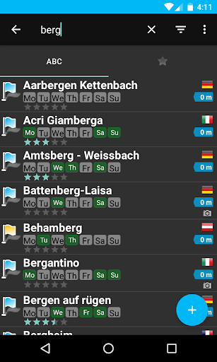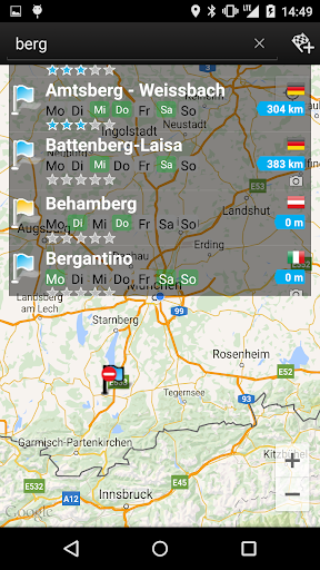 Ang mga ruta ay ipinapakita bilang isang listahan (pinagsunod-sunod ayon sa pangalan o distansya) o sa isang mapa, bawat isa ay may indicator ng distansya sa kasalukuyang posisyon.