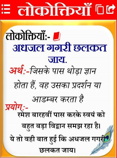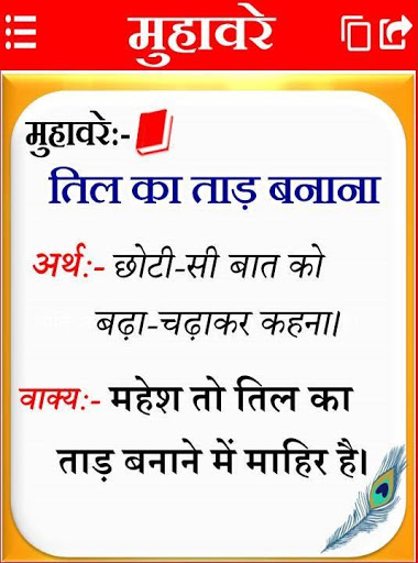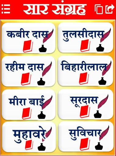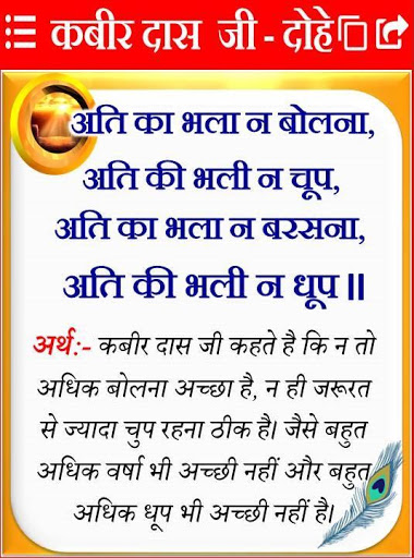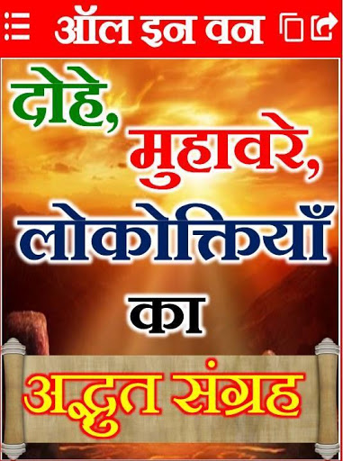 This app provides you with Hindi Dohe Suvichar and Muhavare in Hindi. This is an online/offline app that gives you Dohe Muhavare and Proverbs with meaning and many more things in one place. Here you can get various categories of Hindi Dohe like- Kabir das Ji Ke Dohe Meera Ke Dohe and Surdas Ke Dohe in Hindi.