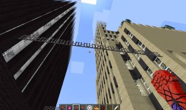 Mod Spidy for MCPE adds a new set of items to the game which can be crafted and used to become Spider-Man. Not only will you look as him but you will also have ,such as shooting a web, Double super high jump into the sky like a real spider-man! it's just a set of modifications and improvements for the game Minecraft PE MCPE.