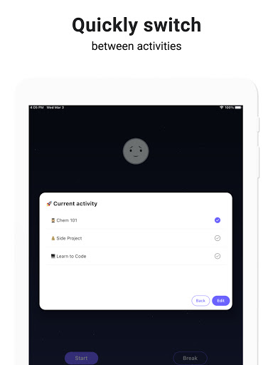 • Maikling break timer sa pagitan ng mga pomodoro session.