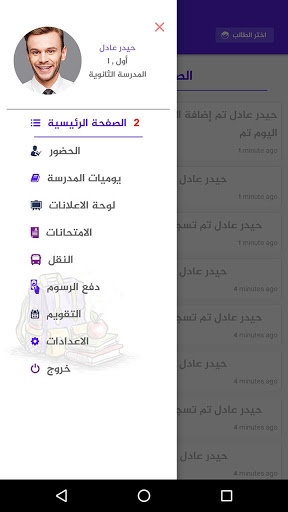 - seksyon ng mga eksaminasyon at Mga Resulta - Kagawaran ng Sibil na Paaralan (Mga Espesyal na Paaralan) - Seksyon ng Mga Linya ng Transport (sa pamamagitan ng seksyon na ito follow-up sa mga mag-aaral na gumagalaw at nagpapaalam at nag-uulat sa paaralan o bahay sa pamamagitan ng mga abiso sa application at maaaring masubaybayan ang mag-aaral sa mapa Sa pamamagitan ng serbisyo ng GPS sa satellite (ang driver ay kinakailangan upang magamit upang mag-apply (nebras driver) Tandaan na ang serbisyong ito ay libre para sa lahat ng mga mag-aaral upang makabalik sa kanilang kaligtasan - higit sa isang mag-aaral ay maaaring idagdag sa parehong application at madaling mag-navigate