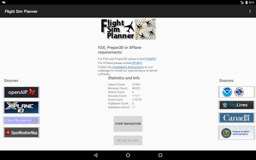 Free to use flight planning and live tracking tool based on Google maps for FSX, Prepar3D or XPlane but it can also use the build-in gps. The app has a large database of airports worldwide with additional information on runways and frequencies, navaids and fixes. For every large airport the METARs and TAFs are available when online.