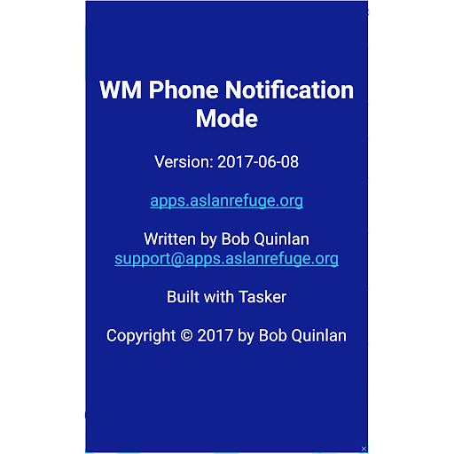 Kung gumagamit ka ng Tasker at i-import ang proyekto para sa app na ito, sa halip na i-install ang app mismo, ang iyong Watchmaker Maaaring italaga ng mga mukha ang mga gawain ng tasker nito sa pagkilos ng tap ng layer. Ang mga sumusunod na gawain ay magagamit upang ipaalam sa iyo na baguhin ang mode ng abiso ng telepono: