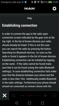 It is possible to connect this app via Bluetooth to your MAN Multi-Media-Truck system. In order to use MAN MMT Remote Control, please make sure that your smartphone is connected as the primary phone to MAN Multi-Media-Truck system.