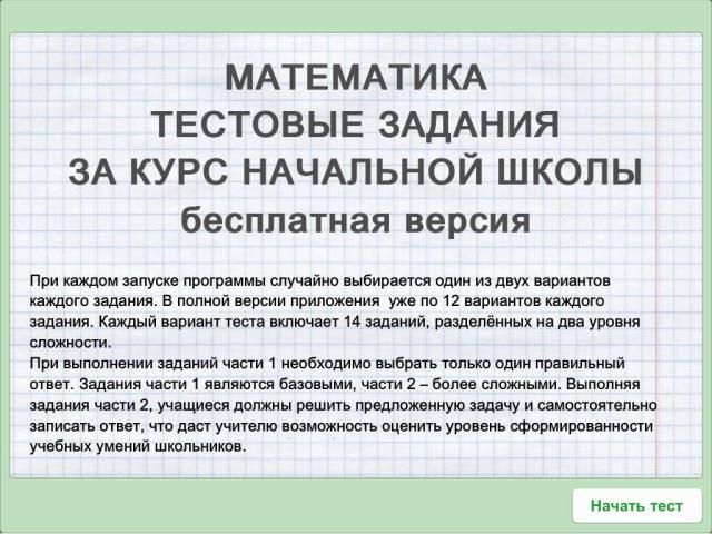 Appendix 2 contains the final test version, compiled in accordance with the requirements of the Federal state educational standard of primary education and taking into account the requirements for the training of students completing primary school.
