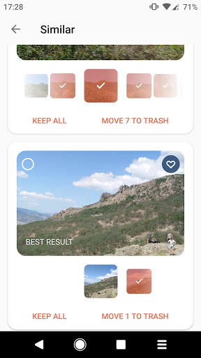 I-save ang iyong oras at libreng puwang sa imbakan sa pamamagitan ng mabilis na pagtanggal ng mga larawan sa 1 click. Palayain ang ilang mga gigabytes sa isang instant, kung kinakailangan, nang walang matagal na pagtingin at mga seleksyon ng mga larawan.