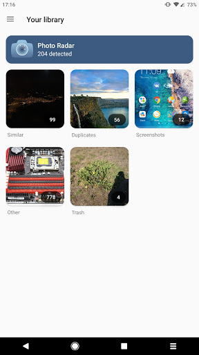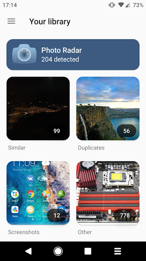 PhotoCleaner Gumagawa ng isang awtomatikong paghahanap at nagbibigay sa iyo ng mga rekomendasyon para sa pagtanggal ng mga hindi kinakailangang mga larawan (mga duplicate at katulad na mga larawan, malabong mga larawan, mga screenshot, mga larawan mula sa mga social network, atbp.)