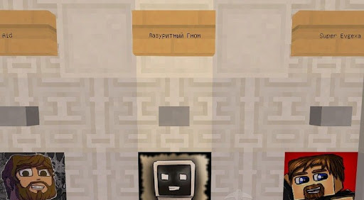 Well, siyempre, hindi namin nalilimutan ang tungkol sa mapa na "Hulaan Minecraftera". Binubuo ito ng iba't ibang mga kuwarto, kung saan ang pindutan ay magiging, kapag nag-click ka kung saan naririnig mo ang tinig ng isa sa mga sikat na blogger ng YouTube na nag-specialize sa Minecraft. Kailangan mong matukoy kung kanino ito nabibilang at i-click ang pindutan sa itaas ng portrait.