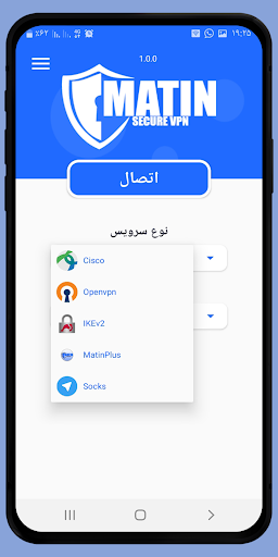 اپلیکیشن matin VPN دارای سرویسهای مختلف وی پی ان برای تمام دستگاههای آندرویدی است که کاربران میتوانند به راحتی با اتصال به سرورهای پرسرعت به فیلتر شکن متصل شوند.