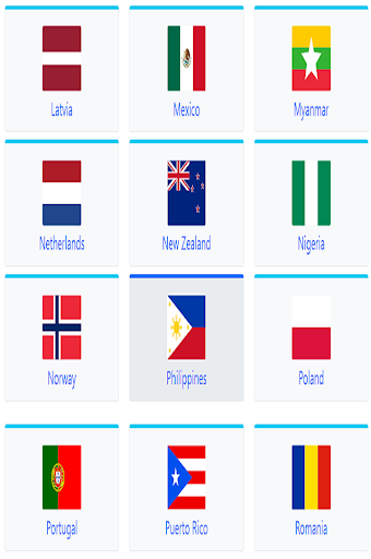Australia, Austria, Bangladesh, Belhika, Canada, Tsina, Denmark, Hong Kong, Indonesya, Israel, Italya, Kazakhstan, Latvia, Mehiko, Miyamya, Netherlands, New Zealand, Nigeria,Norway, Philippines, Poland, Portugal, Puerto Rico, Romania, Russia, South Korea, Espanya, Sweden, Thailand, Ukraine, United Kingdom, Estados Unidos at Vietnam.