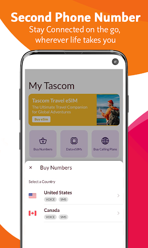 Tascom ay nasaklaw mo!Madali kang bumili ng isang virtual na numero ng 2nd phone mula sa USA & amp;Canada upang magtatag ng isang lokal na presensya saan man kailangan mo ito.Magpaalam sa mamahaling mga singil sa roaming at tamasahin ang kakayahang umangkop ng pagkakaroon ng maraming mga numero ng telepono sa isang app.Walang alalahanin!Ang TASCOM ay nagbibigay ng virtual SIM para sa higit sa 150 mga bansa, na nagpapahintulot sa iyo na manatiling konektado nang hindi nangangailangan ng isang pisikal na SIM card.Sa Virtual ESIM ng Tascom '