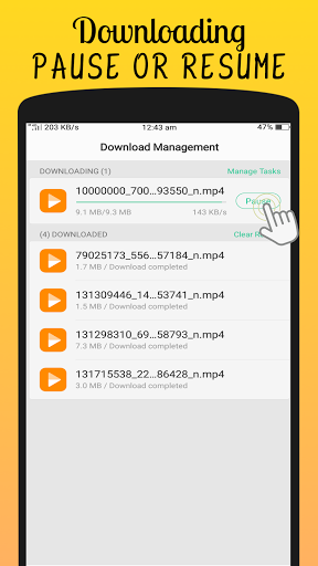 I-download ang mga video at mga social media clip mula sa iyong mga paboritong site nang direkta sa iyong device. Maaari mong i-save ang mga video at magsaya sa panonood ng offline. Ang libreng video download app auto ay nakakakita ng mga video sa social media.